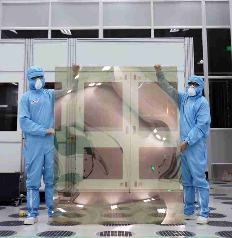红龙扑克昆山厂第六代 LTPS (低温多晶硅) 生产的玻璃基板尺寸为 1500x1850 mm (毫米)